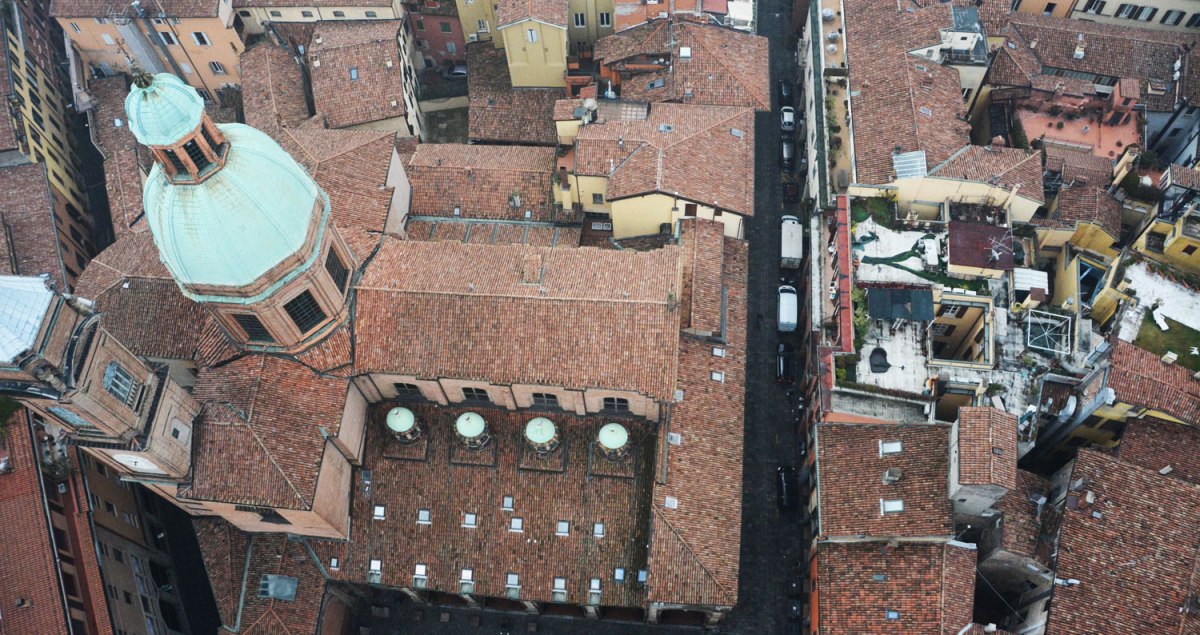 The obvious option for getting a good look of Bologna from above is Torre Asinelli, a remnant of the (possibly?) 100 towers that dotted the city in medieval times. Torre Asinelli was built between 1109-1119 by the Asinelli family with a height of 97 meters; beside it stands Torre Garisenda, much smaller, measuring 47 meters in height. Both towers are leaning, but Torre Garisenda leans so much that it is closed to the public.