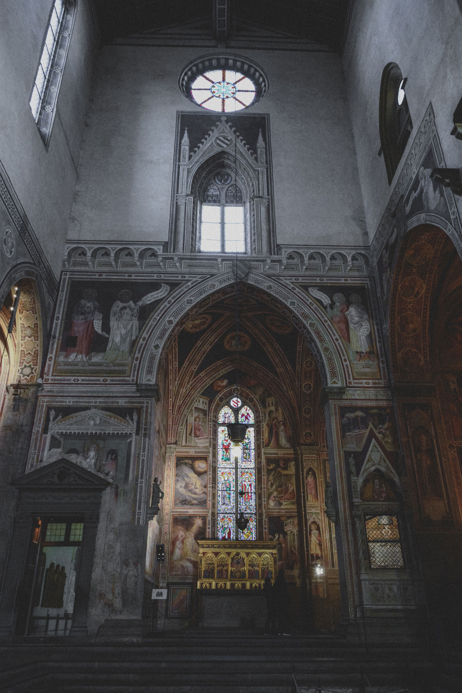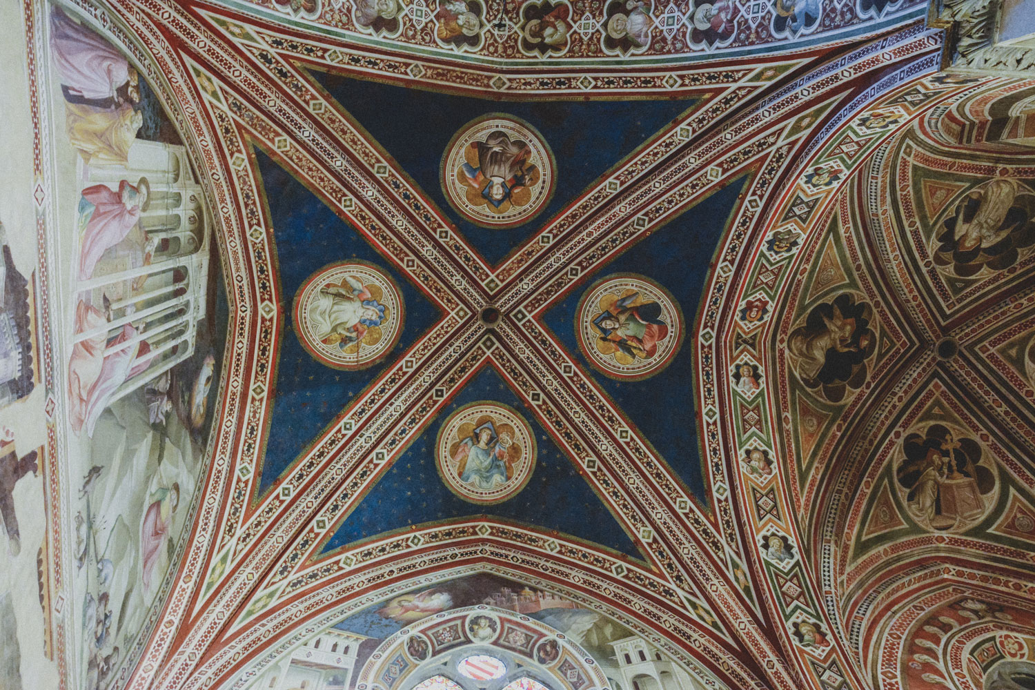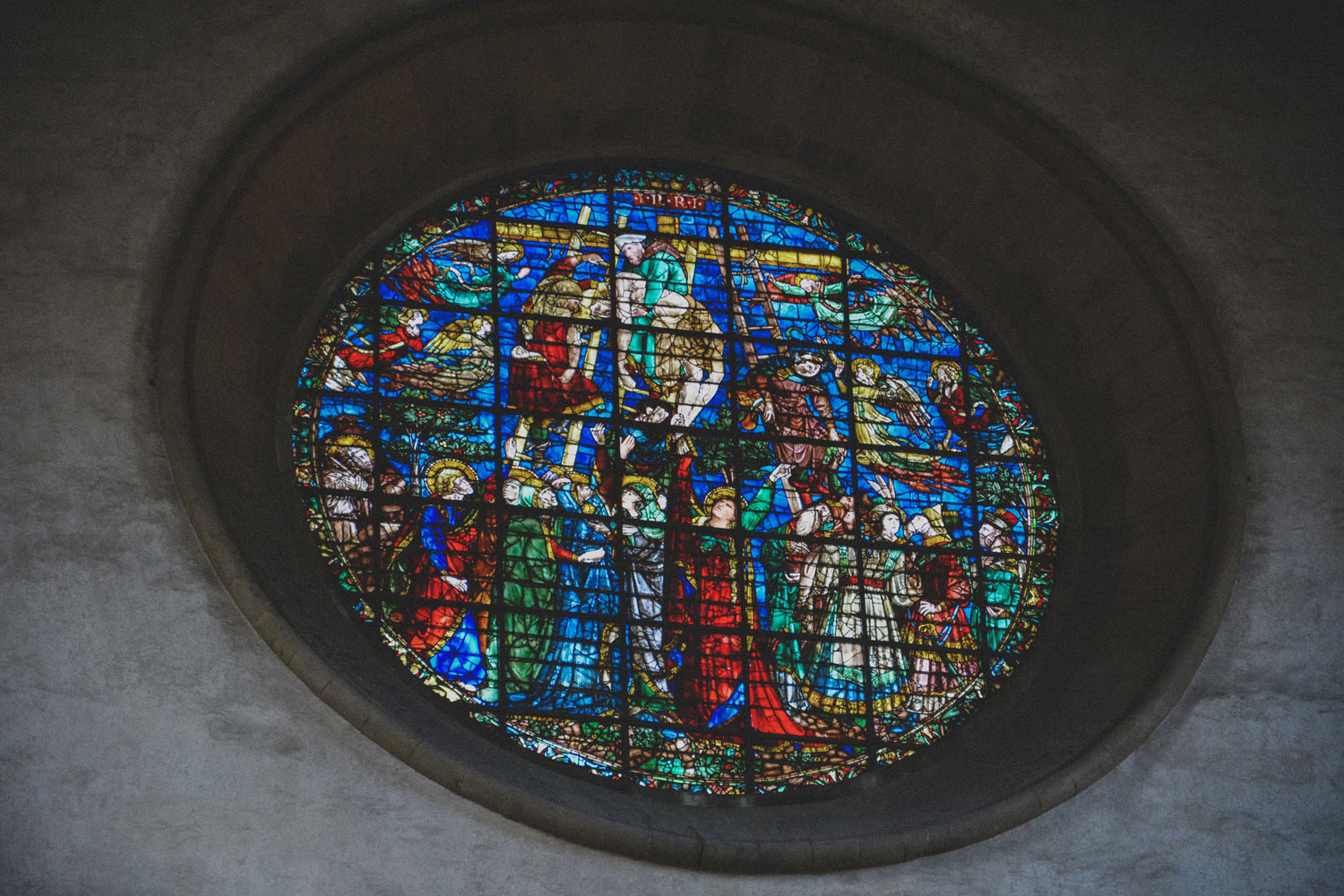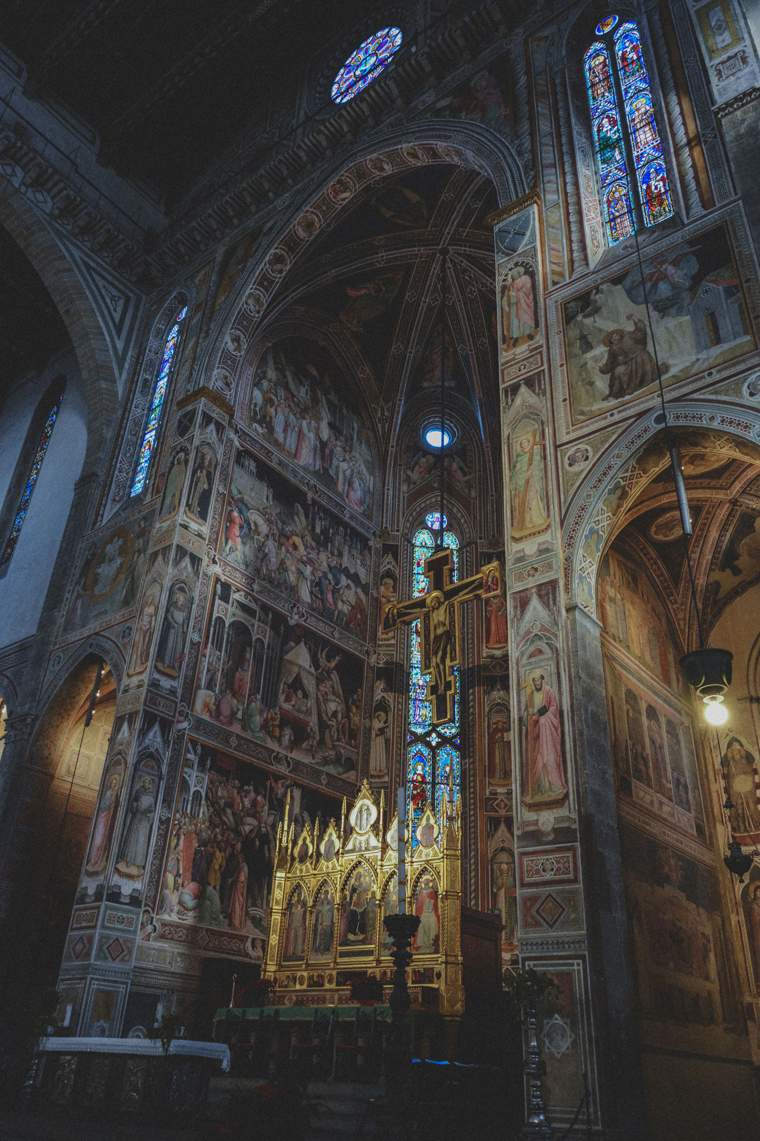 The fresco cycle shows scenes from the life of the Virgin Mary. Gaddi also designed the stained glass windows that allow natural light to flow in and illuminate the painted scenes.