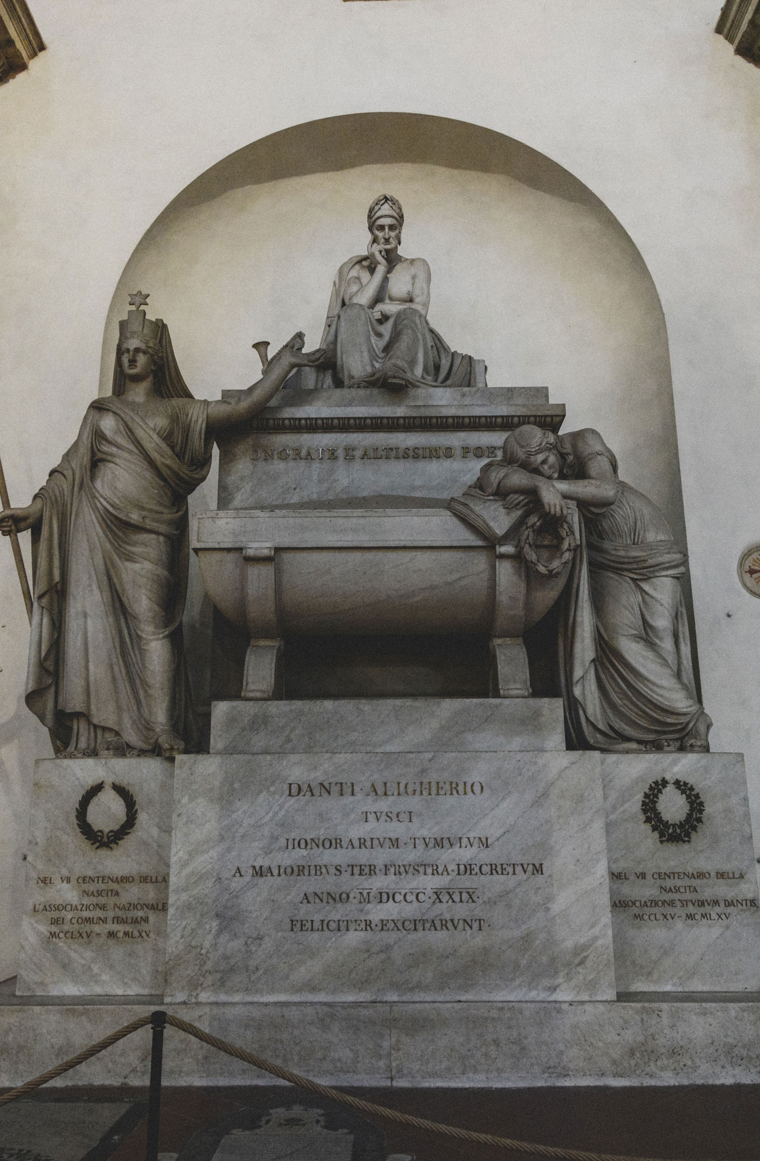 Do not let this monument fool you — it is actually a cenotaph. Though Dante was a Florentine, by the time he died he had been exiled from his homeland and was living in Ravenna. He died there, of quartan malaria, and his tomb reads parvi Florentia mater amoris, which translates to “Florence, mother of little love.” Florence eventually tried to recover his remains from Ravenna, but the latter refused, and though this tomb was built for him in the 19th century, it has been empty ever since its completion.