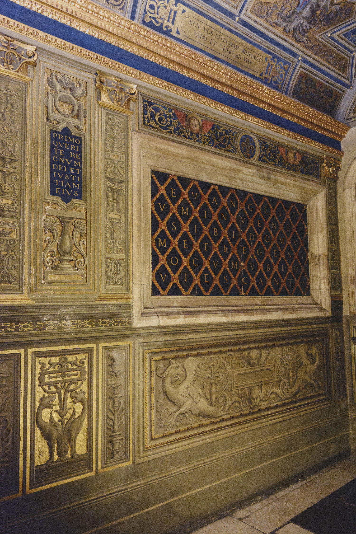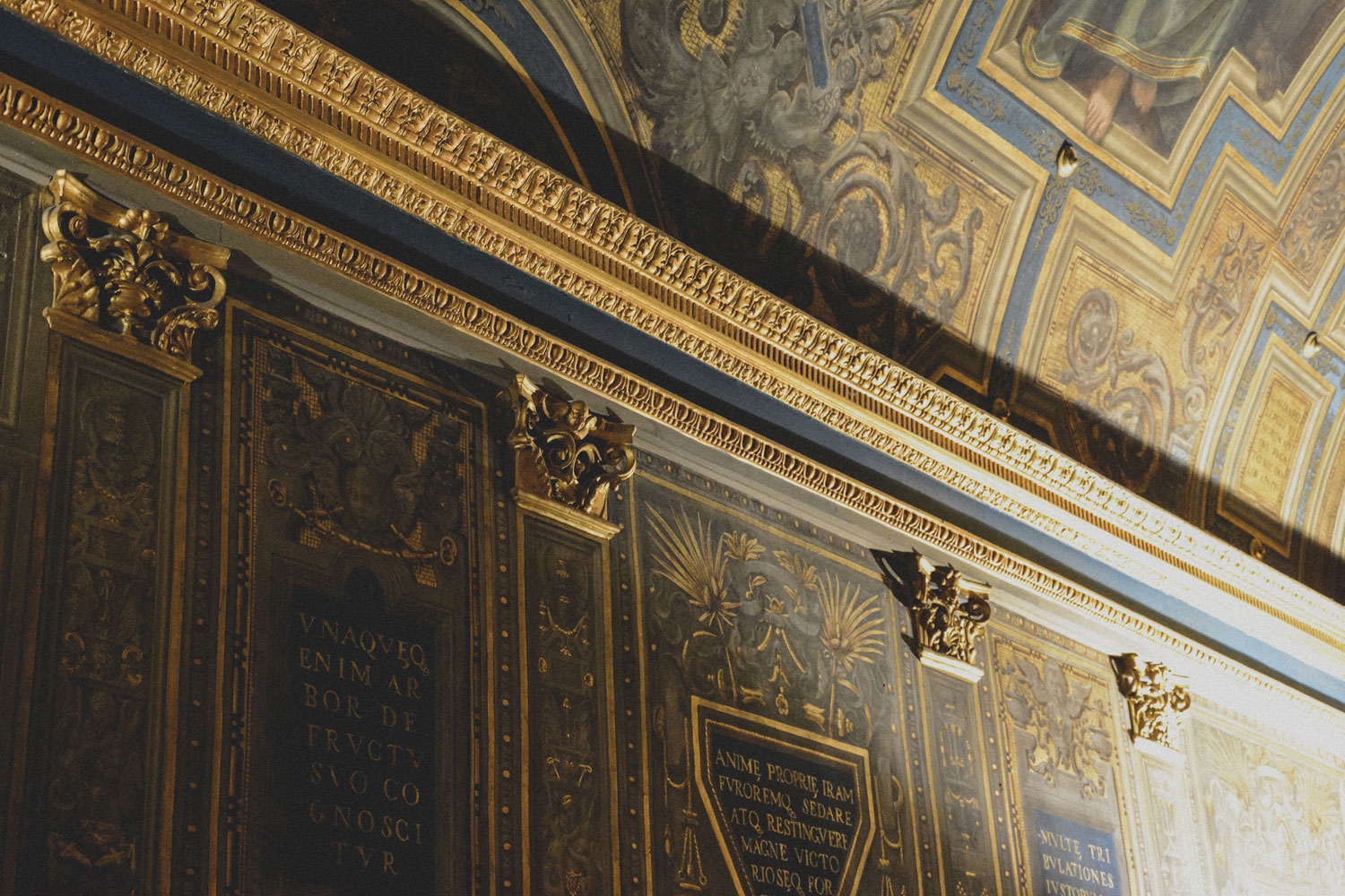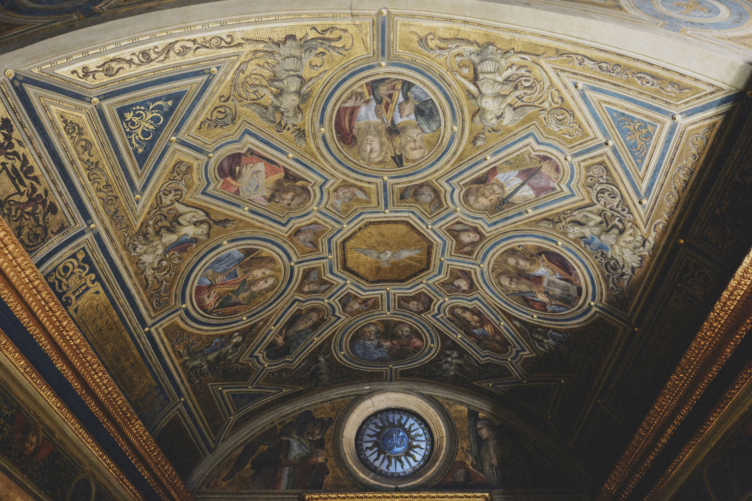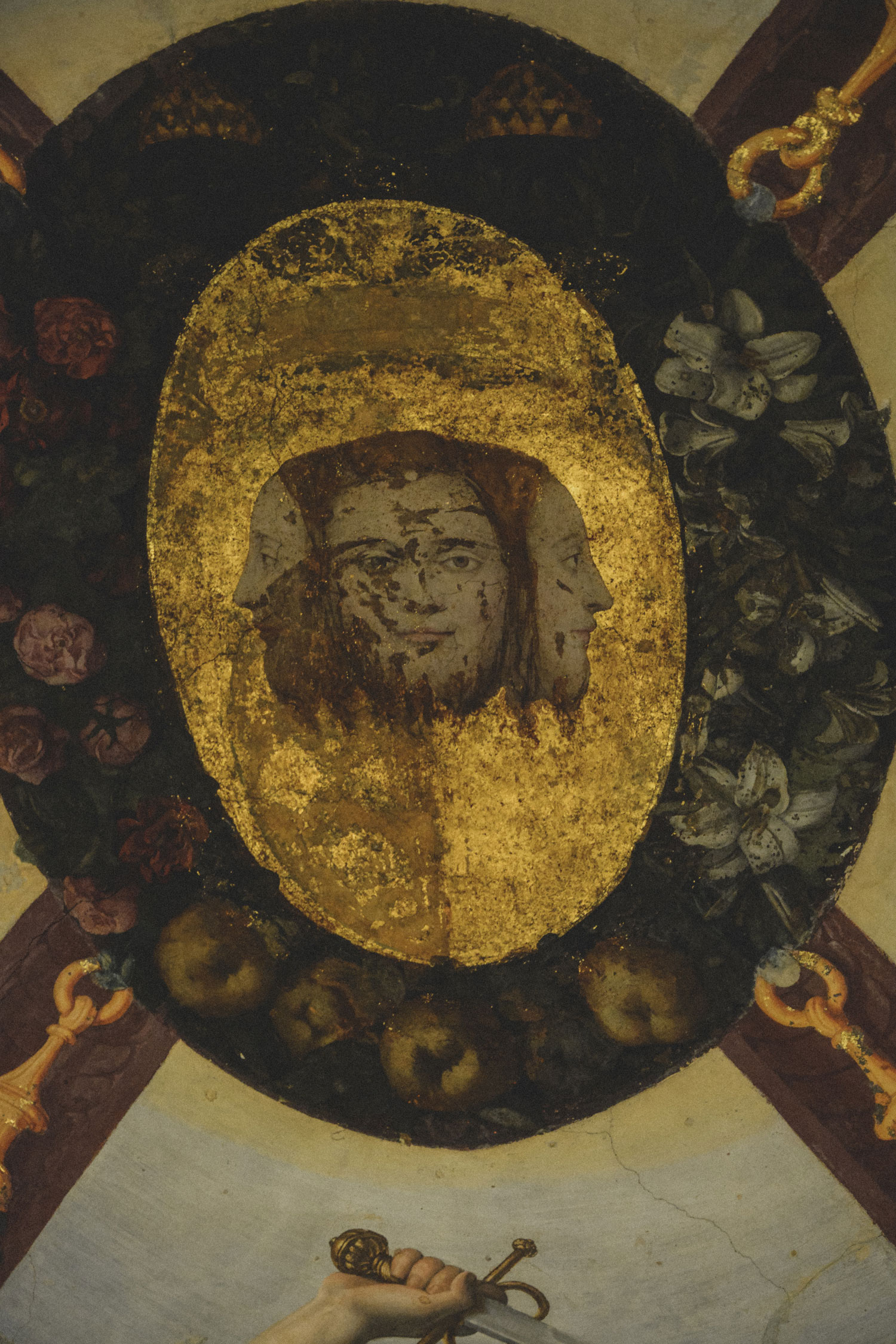 The Hall of the Lilies, as this room is known, is so called for the fleur-de-lys that decorate its walls. This choice in decoration was apparently made in order to refer to the good relations between Florence and the French Crown, and the frescoes on the other walls were made by the hand of Domenico Ghirlandaio. The room has, additionally, served as home to the original statue of Judith and Holofernes by Donatello since 1988. Also, that ceiling.