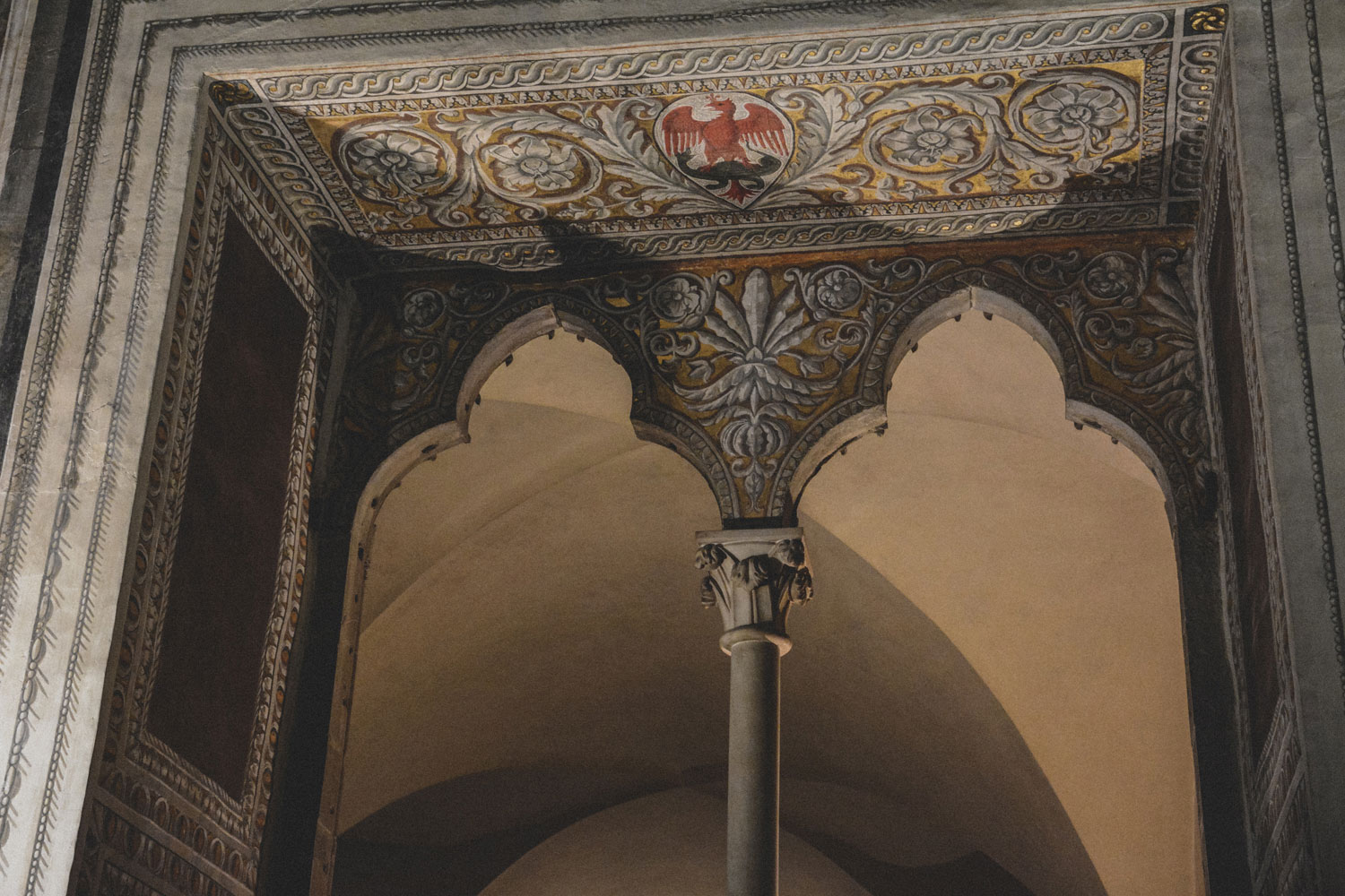 Built by Arnolfo di Cambio in the beginning of the fourteenth century, the palazzo was constructed upon the ruins of two previous structures owned by the Uberti family, which had rebelled against Florence. The propping up of a new building on that precise location, then, was a symbolic gesture that cast them out completely, as it would prevent a new Uberti structure from rising up in what had been historically their home.