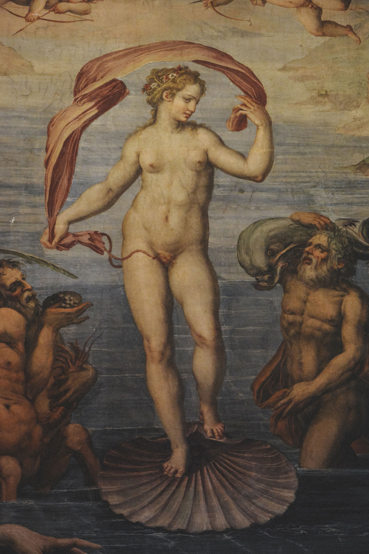 During Vasari’s renovation, some famous works went missing, including the Battle of Cascina by Michelangelo and the Battle of Anghiari by da Vinci. The story behind the latter work is, in true da Vinci fashion, one of innovation, but sadly it is also one of failure (similar to the story behind his Last Supper). This time, he decided to mix wax into his pigments, and once he had seen that his work was not drying fast enough, he had braziers stoked with hot coals to hurry the process. You all know what happens to wax when heated, right? As for Michelangelo’s piece, he never really got beyond the preparatory drawings, as he was called to Rome by Pope Julius II. Something about some Vatican chapel that needed painting.