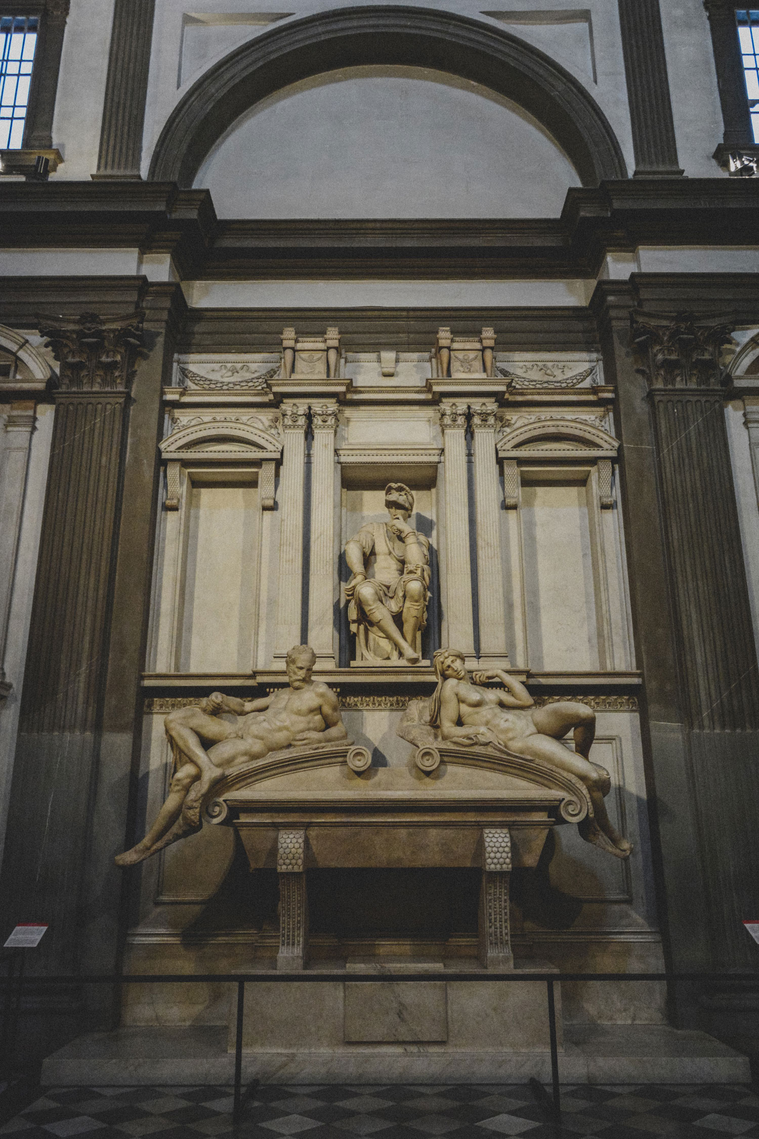These funerary monuments stand, then, for Giuliano di Lorenzo de’ Medici (Il Magnifico’s son), and Lorenzo di Piero de’ Medici (son of Piero de’ Medici and grandson to Il Magnifico).
