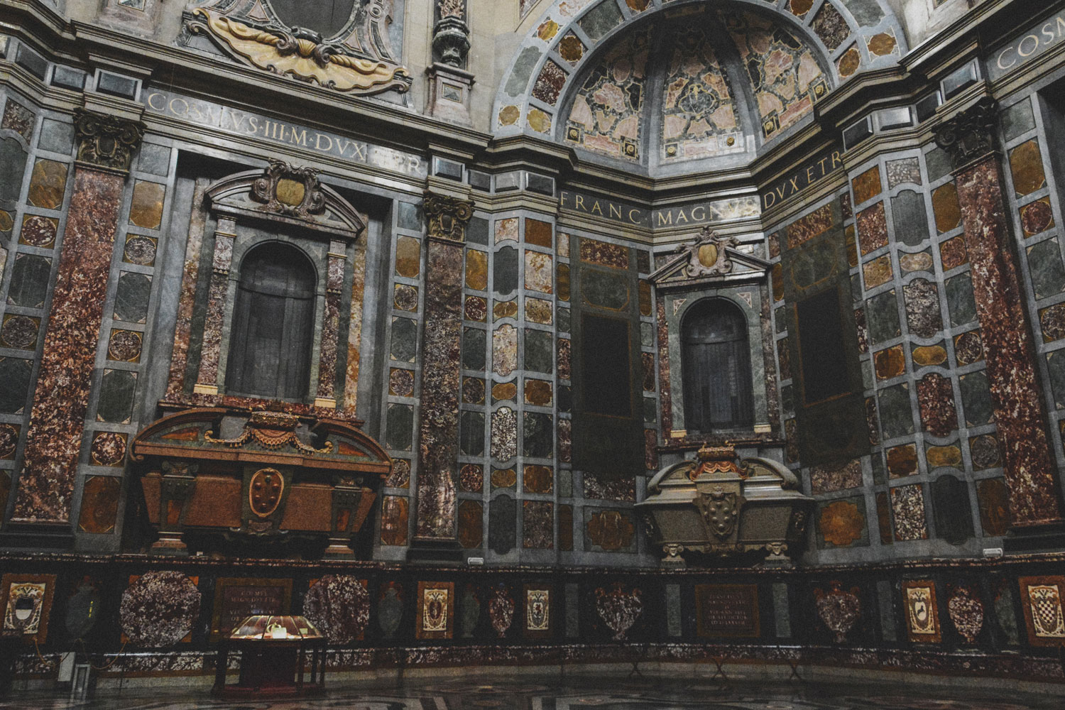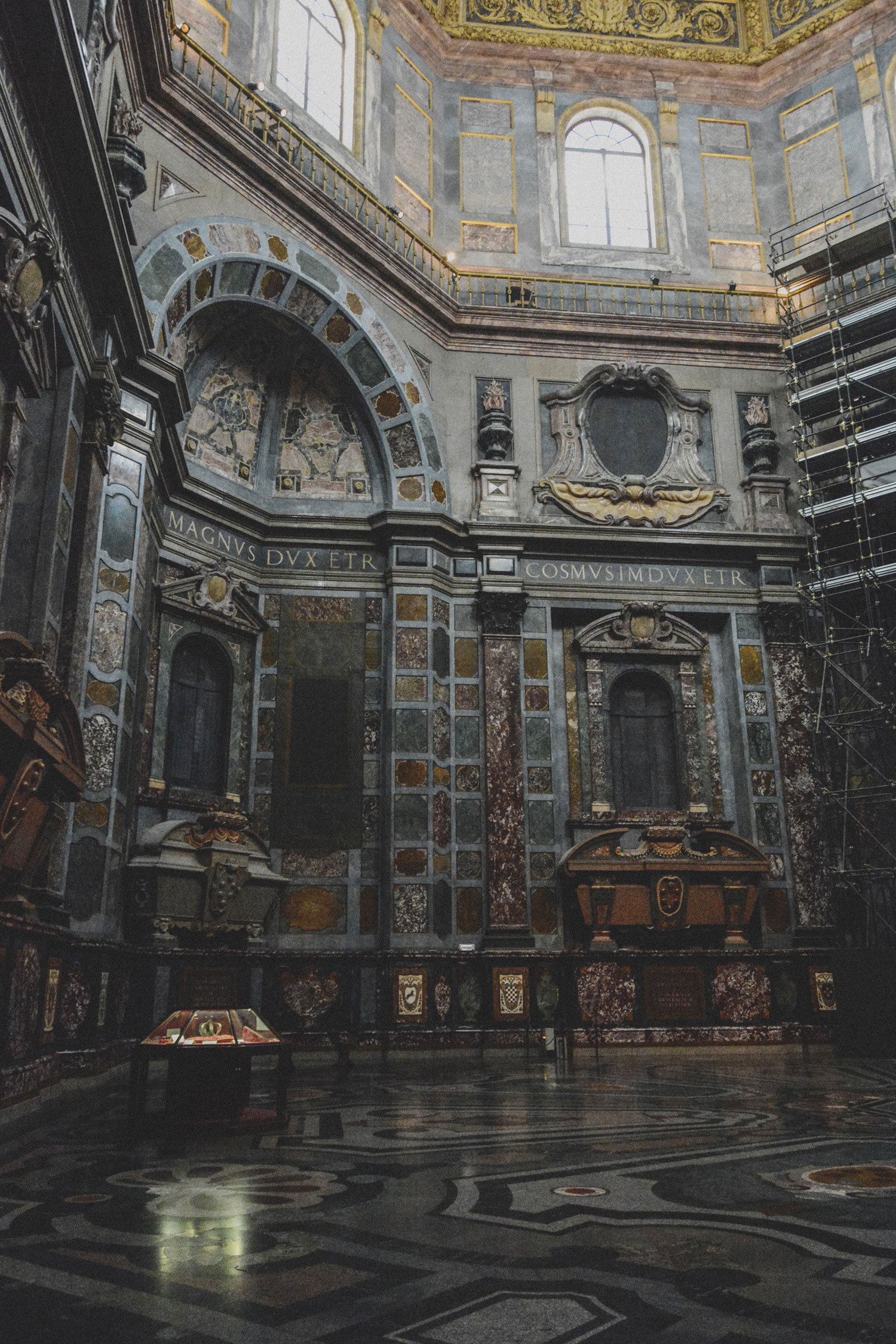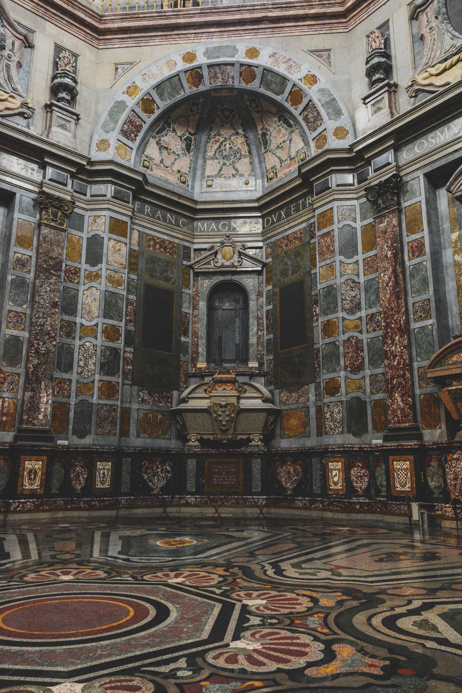 The younger of the two buildings, the Chapel of the Princes was first begun by Cosimo I, Grand Duke of Tuscany. Its design was first created by Matteo Nigetti based on sketches by Giovanni de’ Medici, Cosimo’s natural son. This design was later altered by Bernardo Buontalenti (Nigetti’s teacher and responsible for work at the Uffizi and the Boboli Gardens).