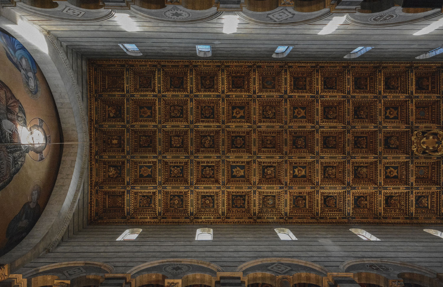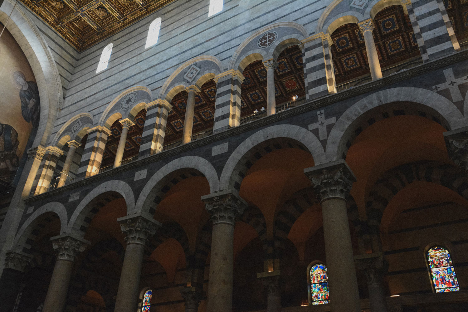 Dedicated to the Assumption of the Virgin Mary, the Pisa Cathedral is a perfect example of the style denominated “Pisan Romanesque.” The building is heavily influenced by the Byzantine, the classical, and the Islamic, due to the international nature of Pisa as a port city.