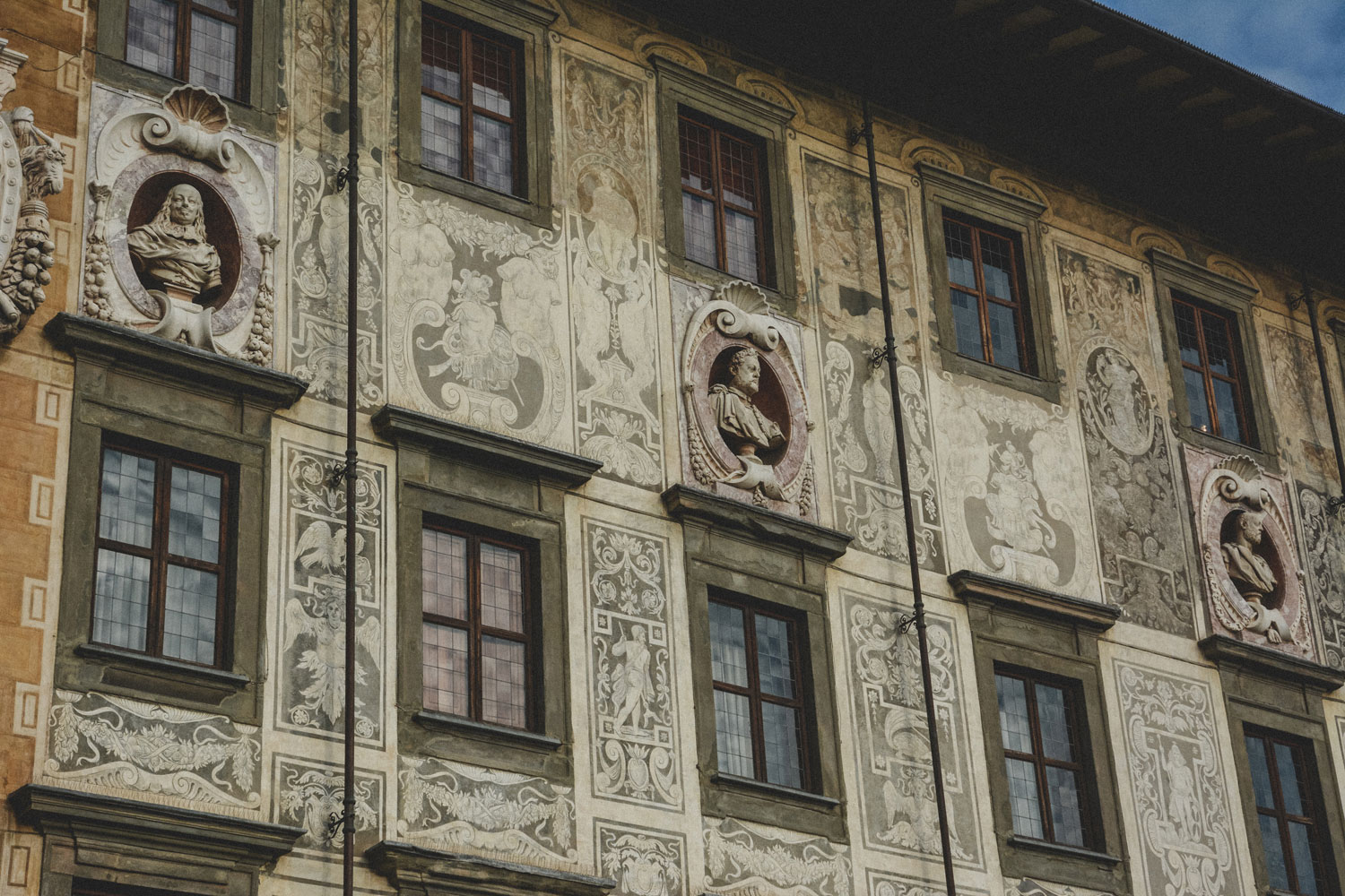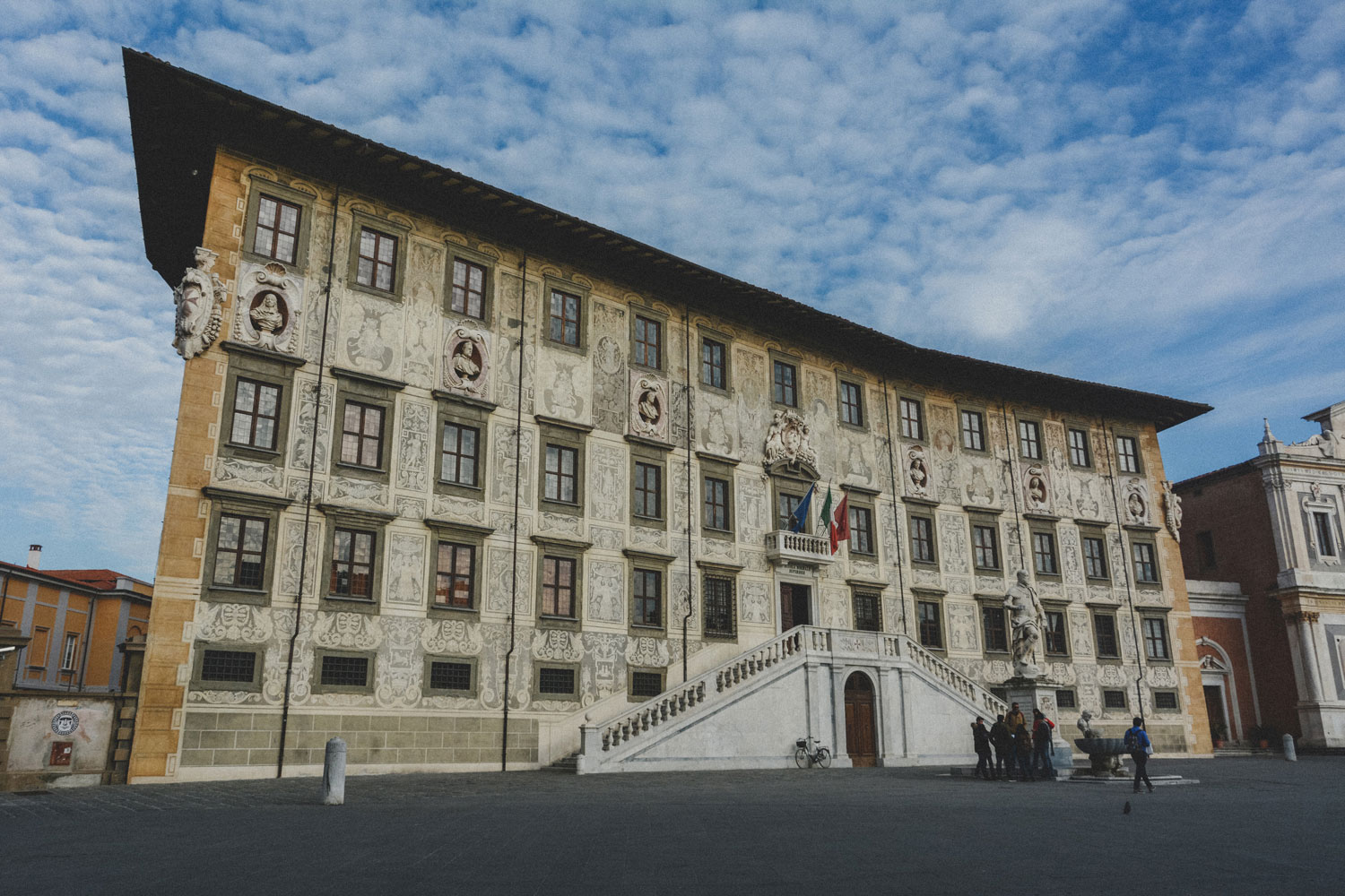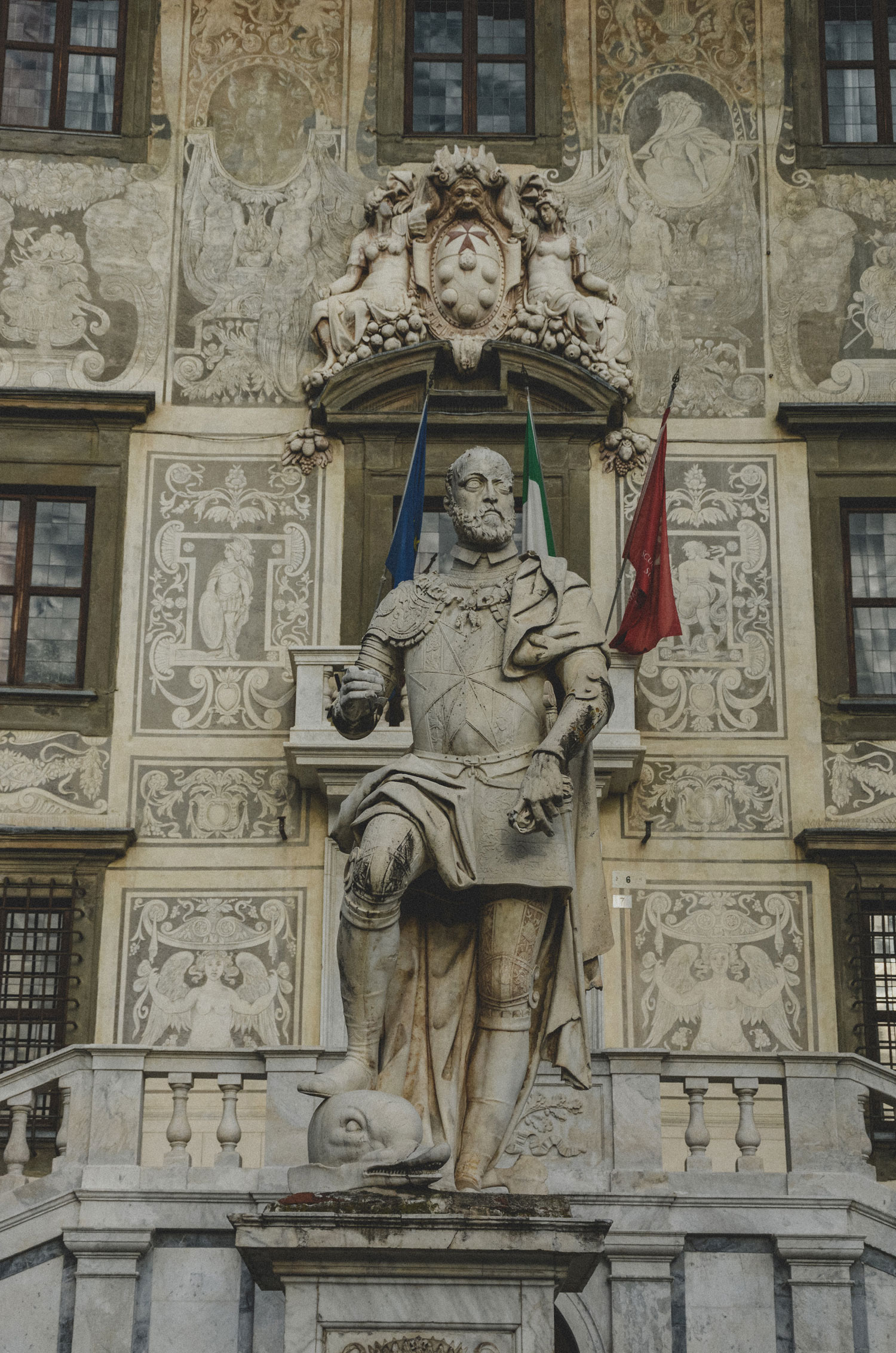 In the fifteenth century, to cement this further, it was rebuilt by Giorgio Vasari. The dominating structure is the Palazzo della Carovana, the palace of the Knights of St. Stephen, decorated with busts of grand dukes of Tuscany. It is the only building in the city done in the Renaissance style.