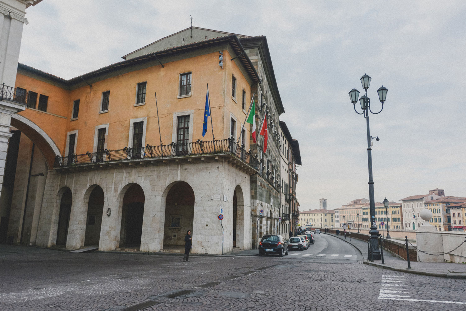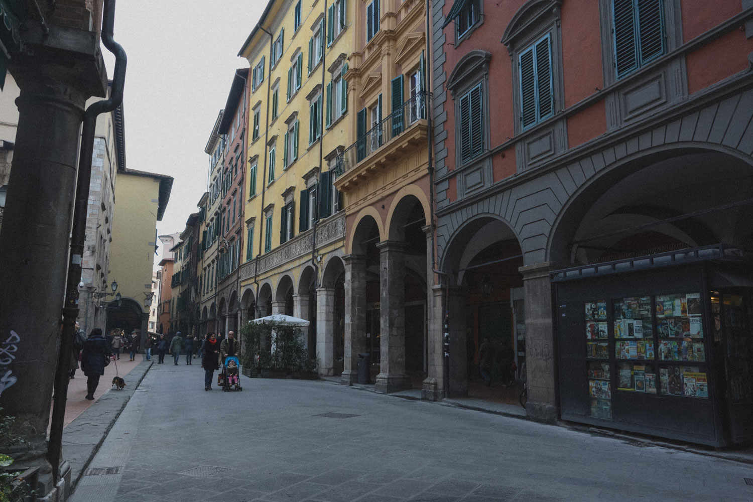 I made the mistake, I think, of visiting Pisa on a Sunday, which meant that most everything was closed. An exception were the tourist attractions/religious buildings of the Piazza dei Miracoli, and a few bars and restaurants in the nearby area. Closer to the river, things were a bit livelier, but it was mostly people just out for a stroll, as most establishments were still closed. Still, you will never hear me complain about having the streets of anywhere all to myself.