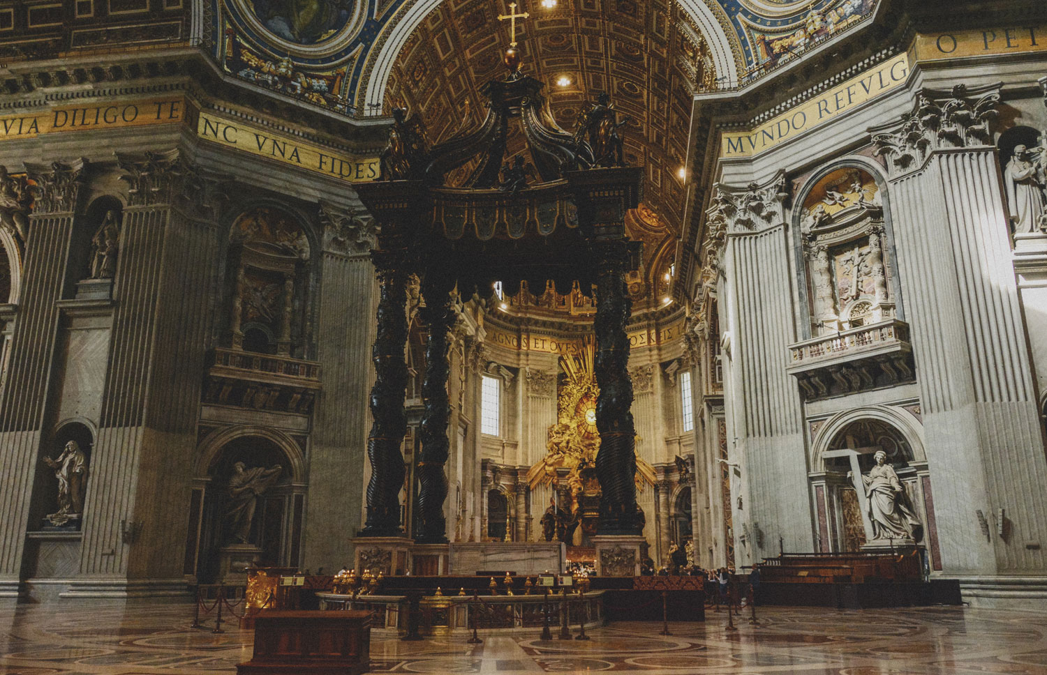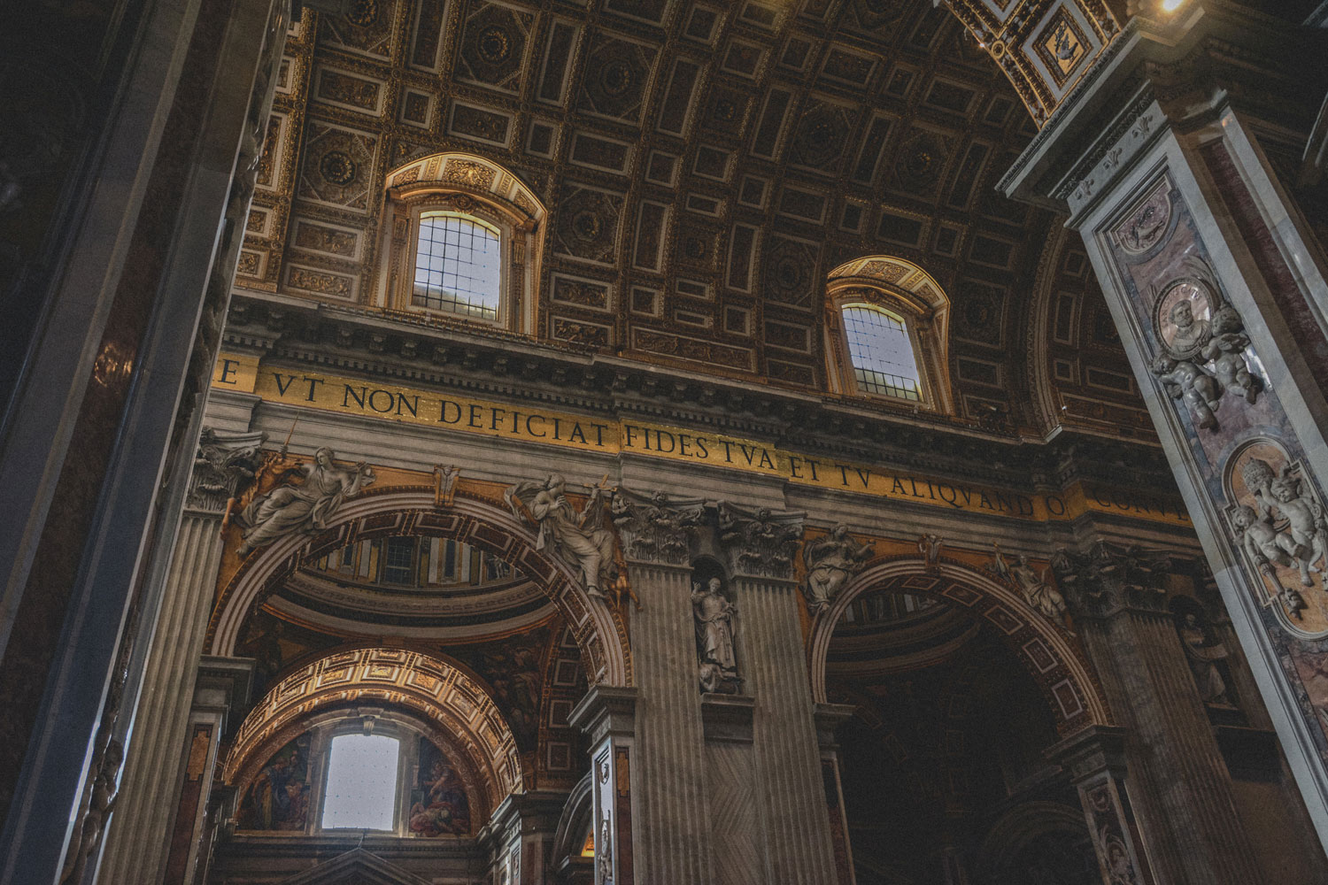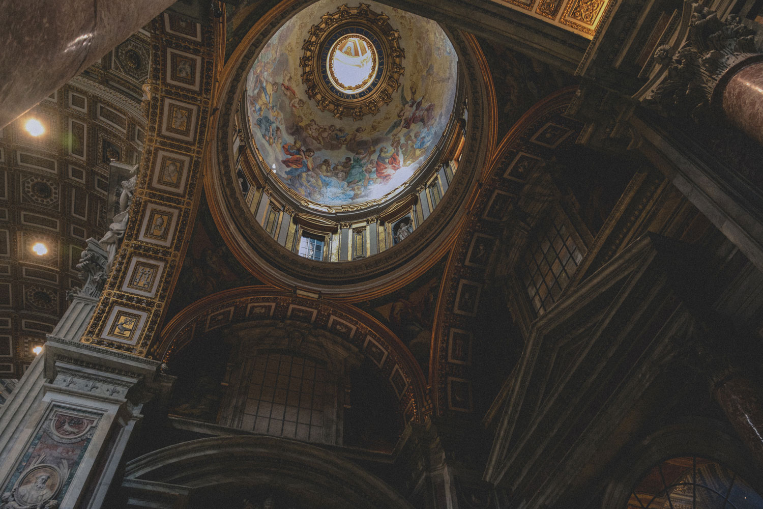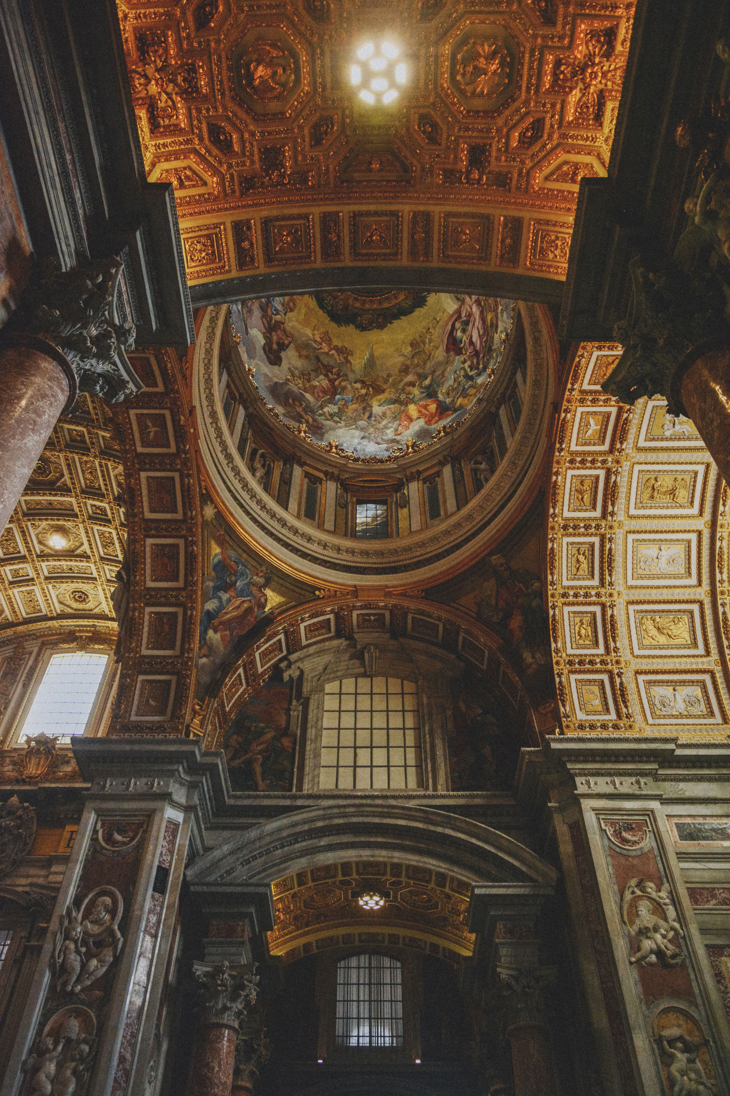 Its interior is also… overwhelming. It’s a whirlwind of marble, paintings, and gilded reliefs. Many popes are buried here, and their tombs and other niches are decorated with sculptures by many different artists.