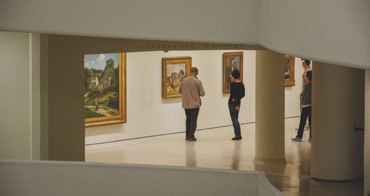 The Guggenheim, as the Solomon R. Guggenheim Museum is often referred to, holds an important collection of Impressionist, Post-Impressionist, early Modern, and contemporary art. It was founded by Solomon R. Guggenheim, born to a wealthy mining family. Though he had been collecting art by the old masters since the 1890s, in 1926 he met artist Hilla von Rebay, who introduced him to European avant-garde, non-objective art, widening Guggenheim’s artistic horizons.